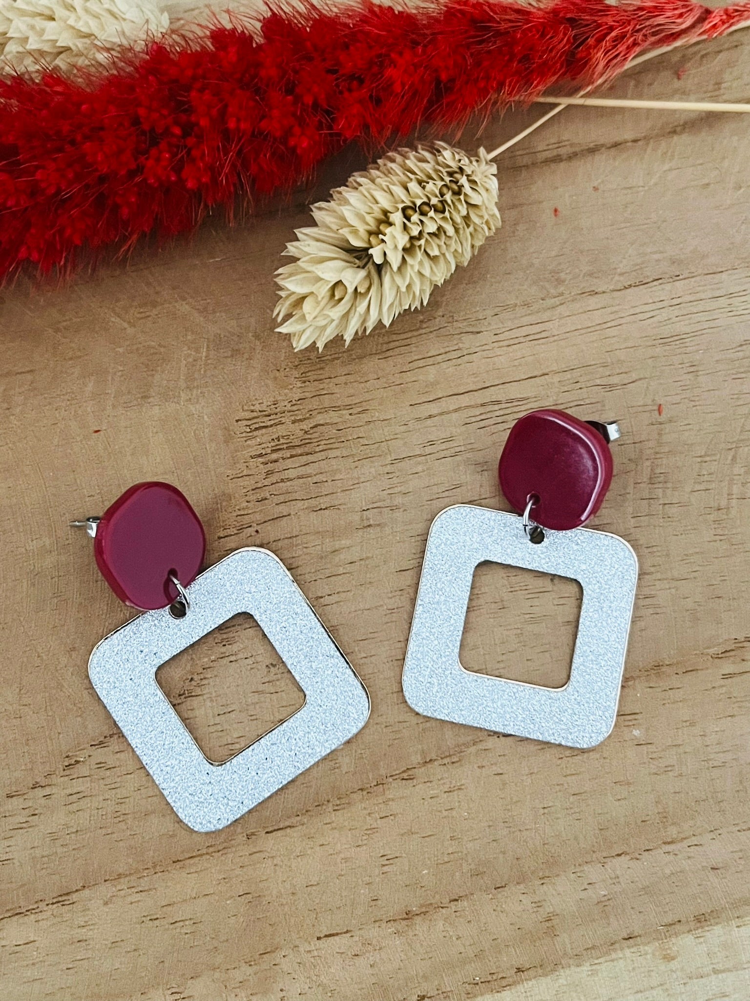Boucles d'oreilles MEGHAN - argent pailleté et bordeaux