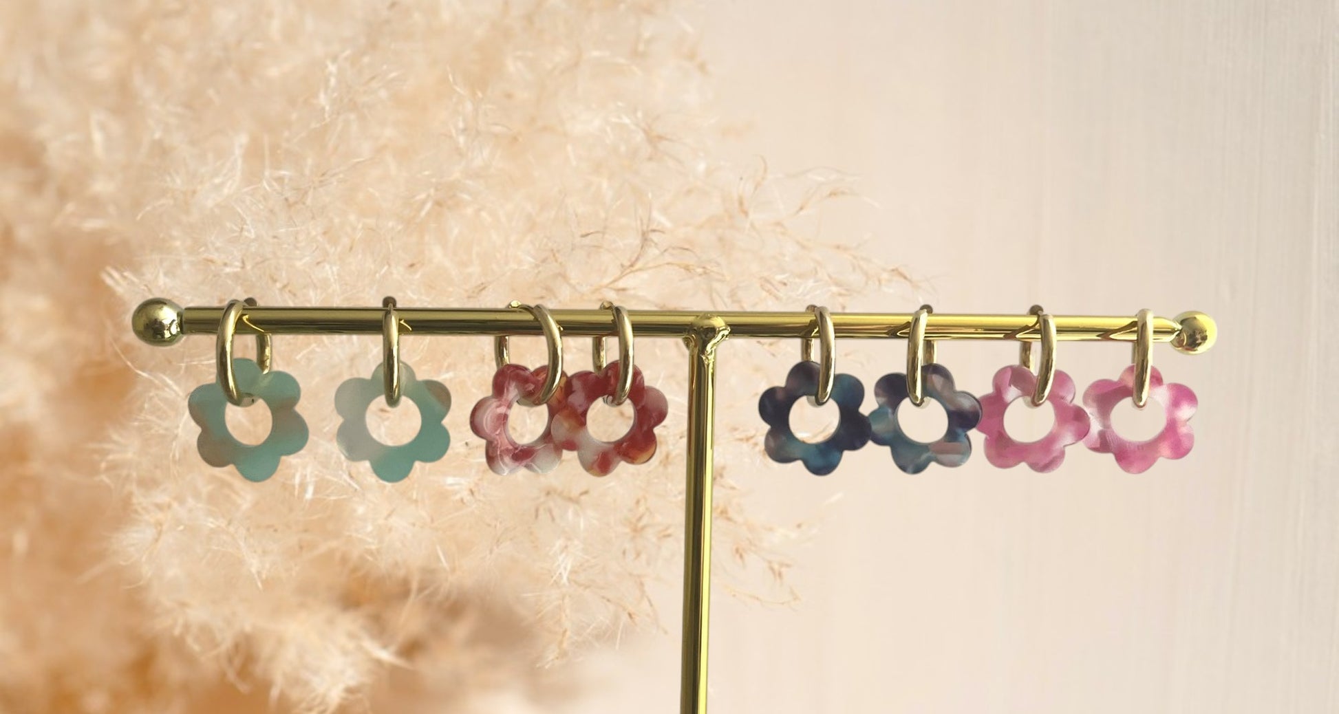 Ces jolies créoles avec leurs fleurs en acrylique sont ultra légères et apporteront une touche d'originalité à vos tenues.