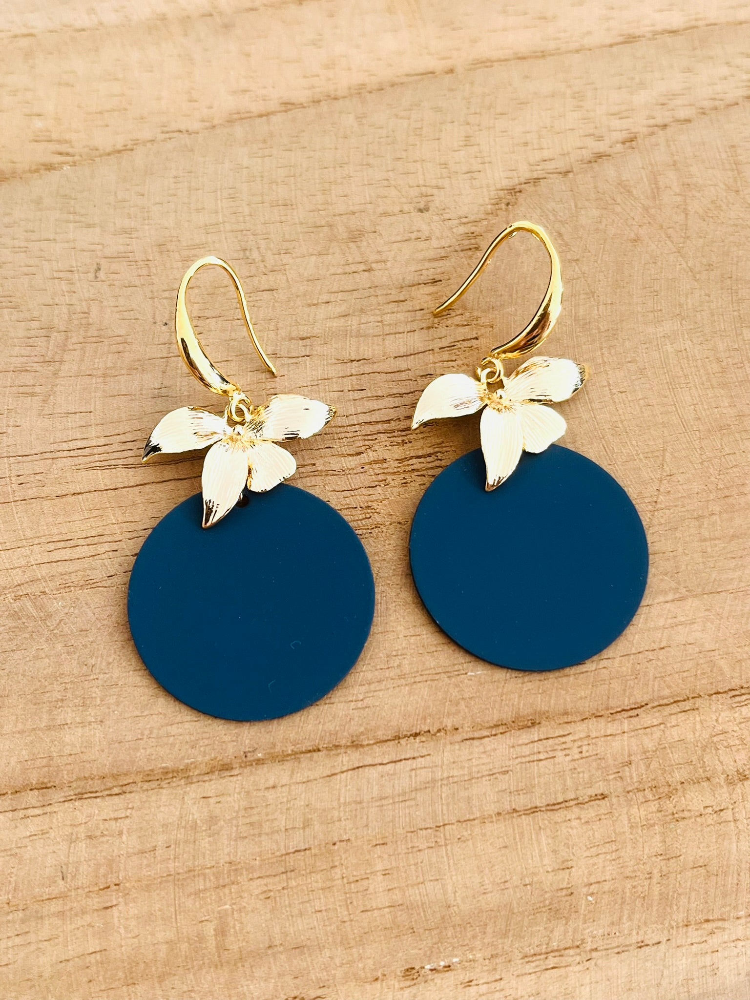 Boucles d'oreilles LORNA - Fleur d'orchidée Doré et bleu marine