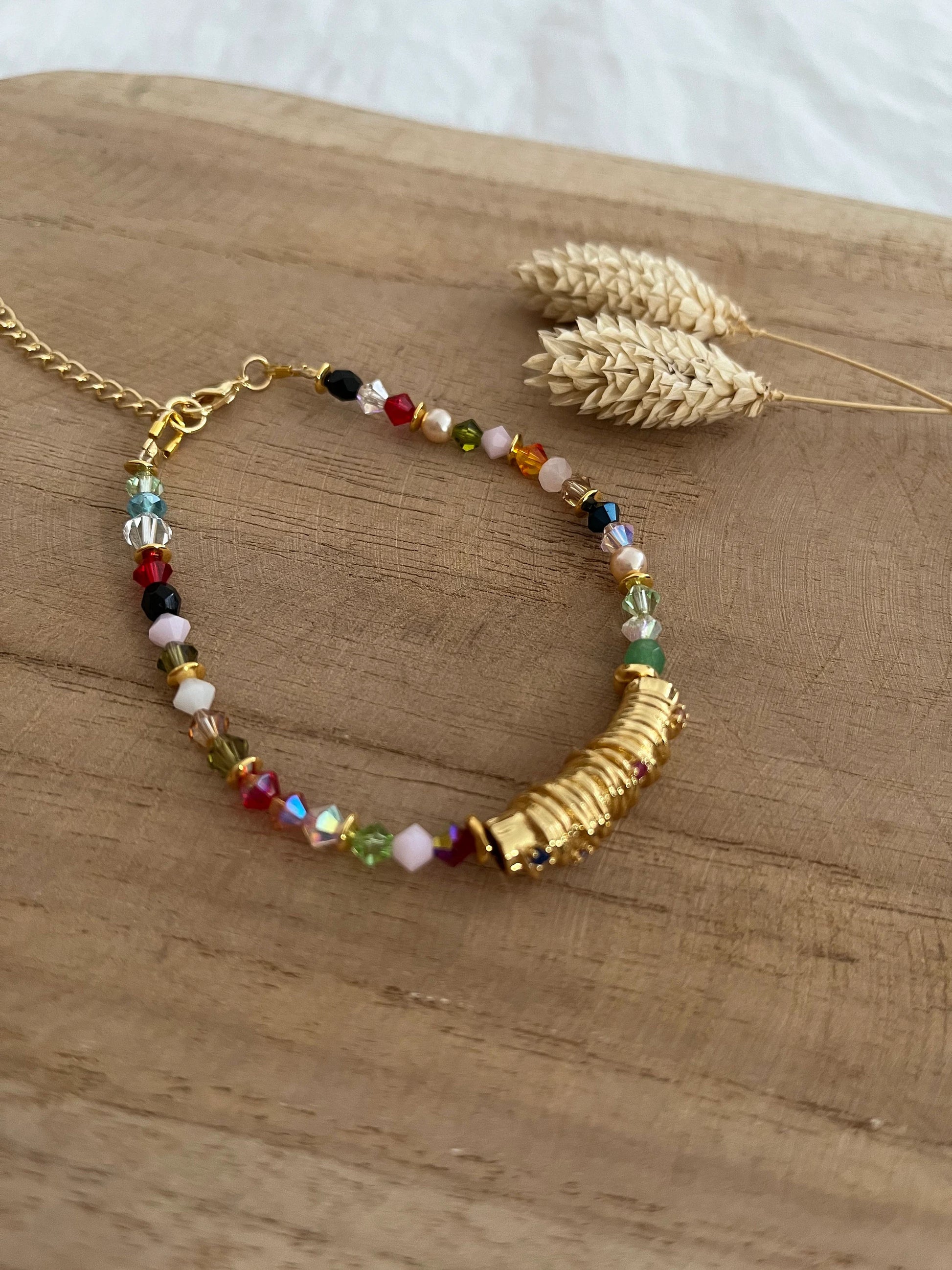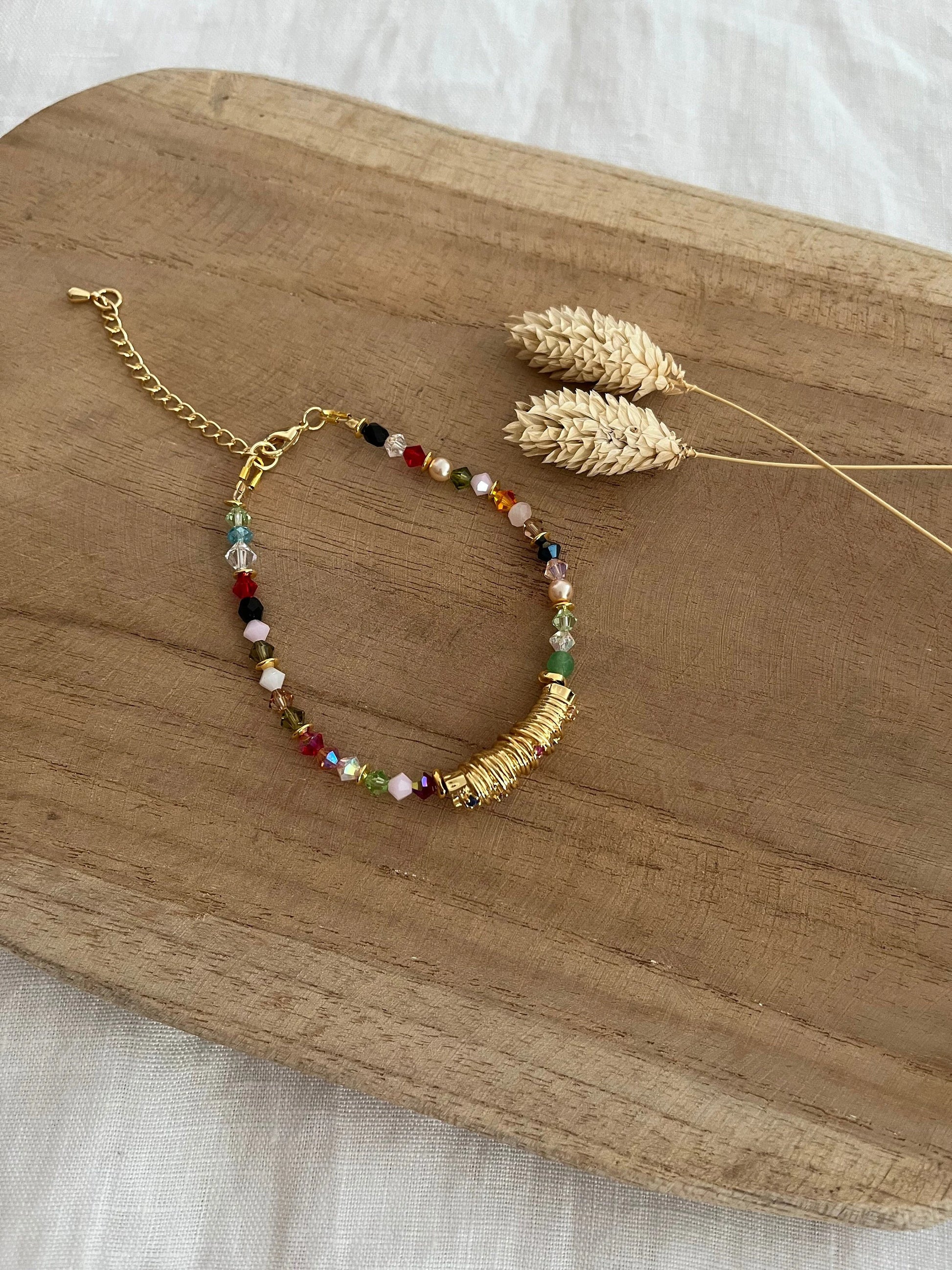 Bracelet DONNY - Or 18K et perles en verre multicolore