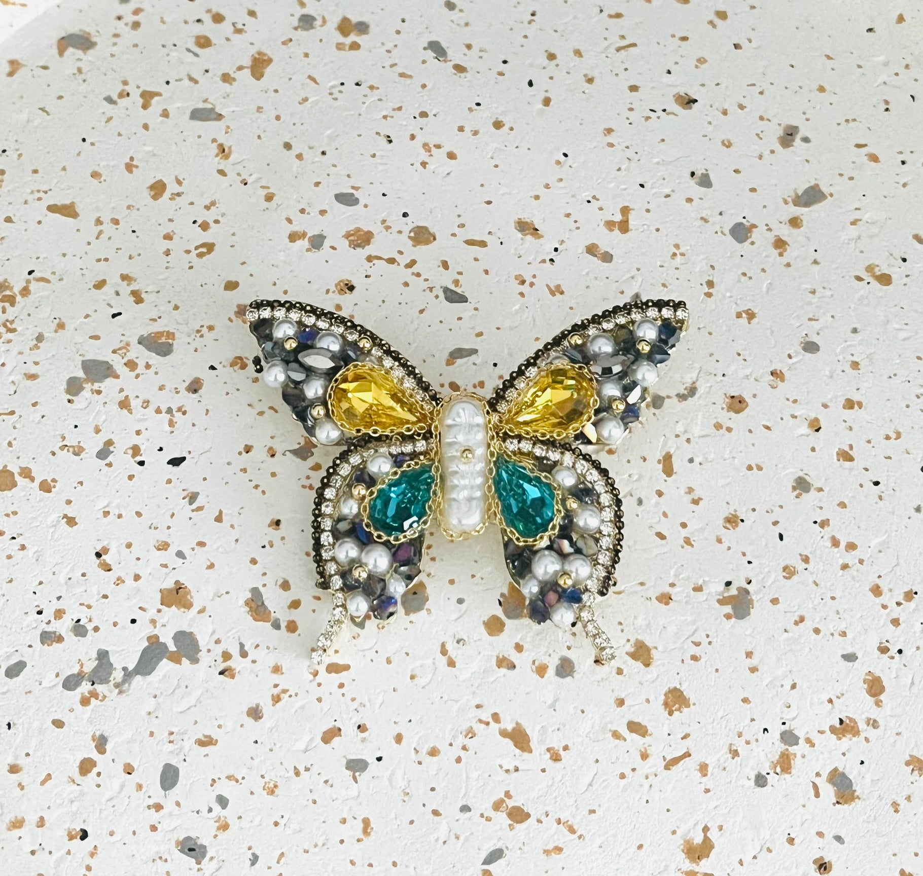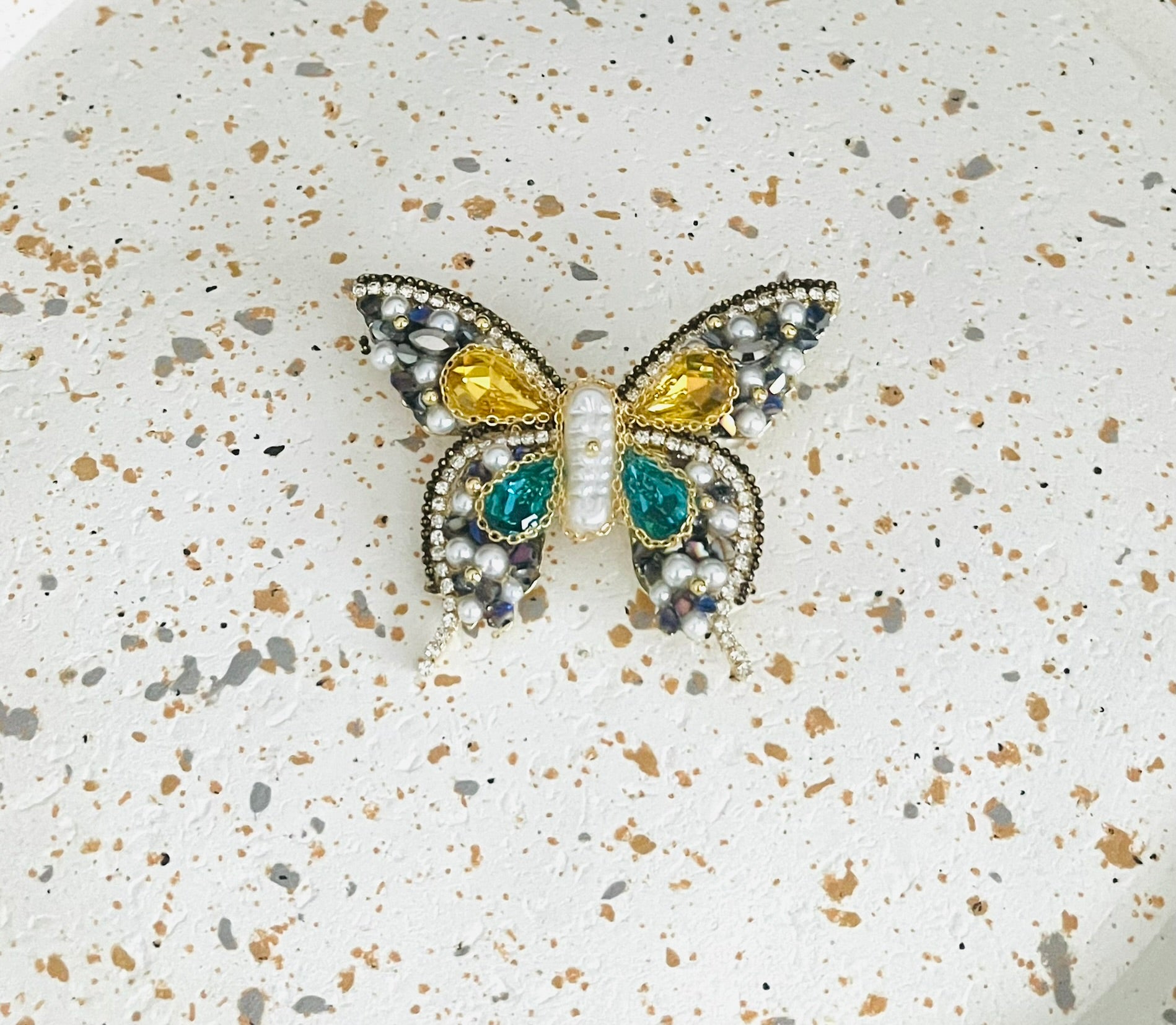 Broche fantaisie Papillon - blanc, jaune, turquoise