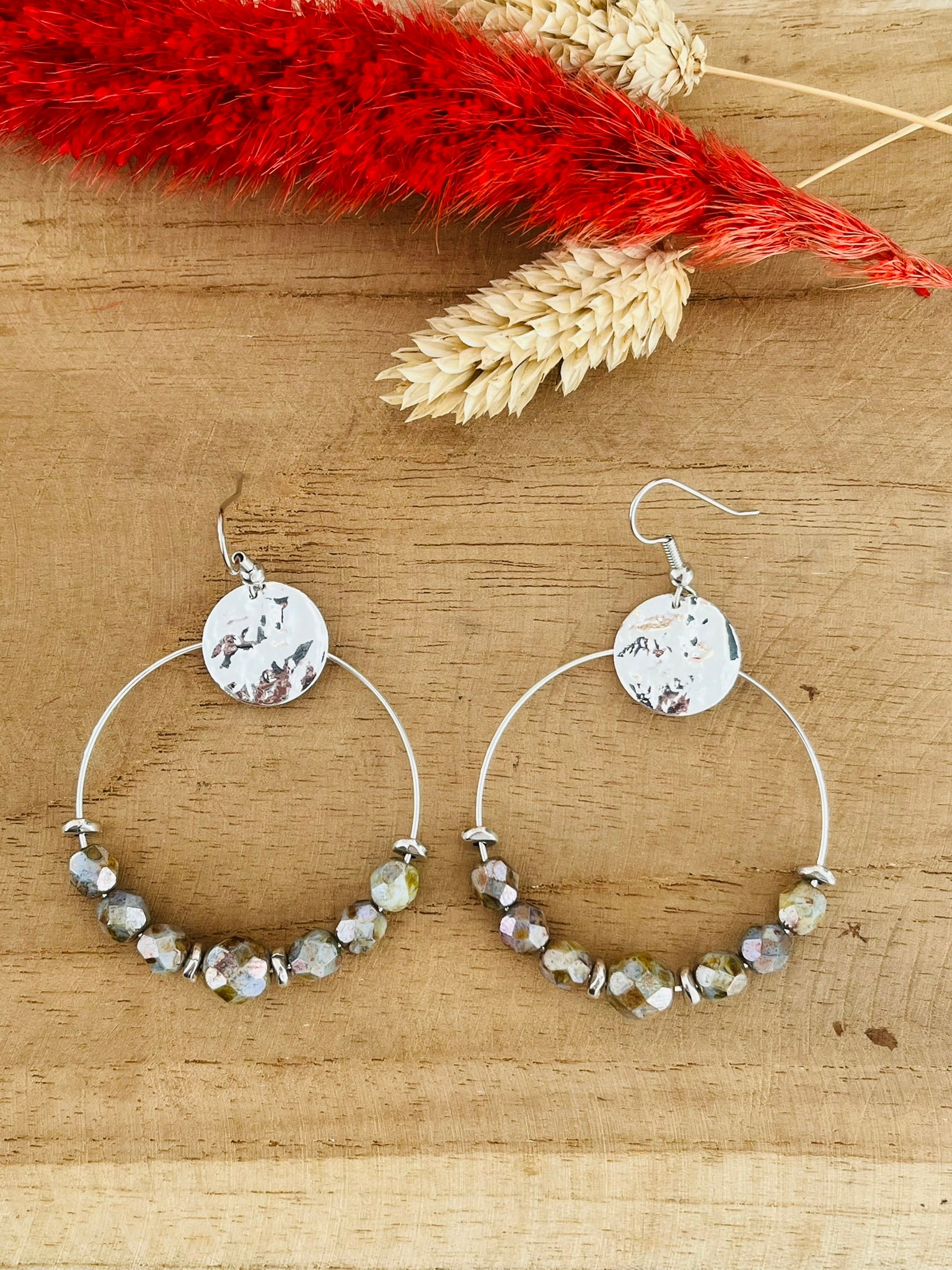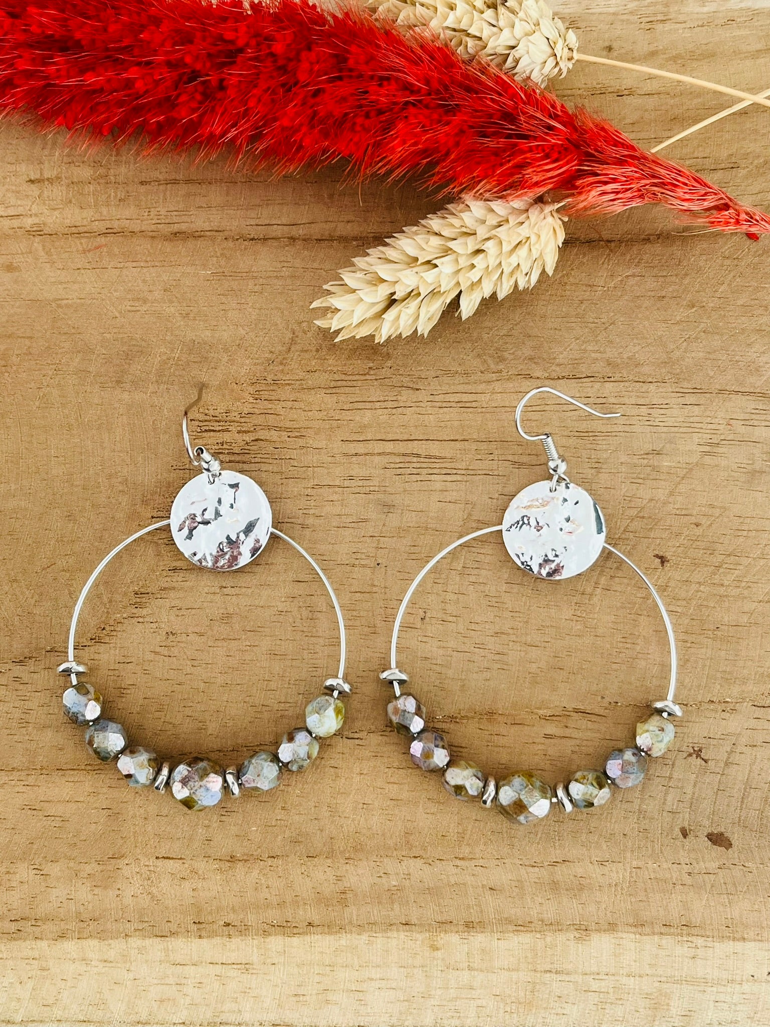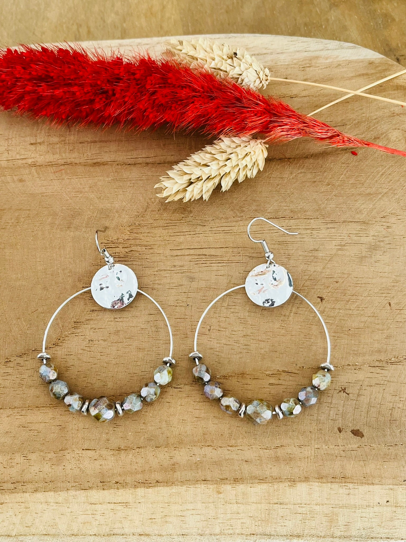 Jolie paire de créoles en perles de bohème à facettes
